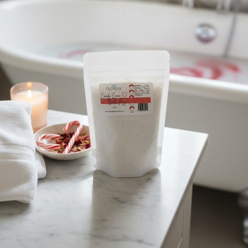 Transform your bath into a festive peppermint escape with Candy Cane Bath Fizz. Simply sprinkle your desired amount into warm bathwater and watch it fizz to life, releasing invigorating peppermint aromatics and skin-softening ingredients. Perfect for holiday self-care or gifting to loved ones who crave a little seasonal indulgence. Let the magic bubble away!